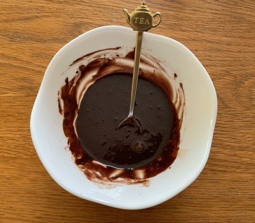 ①ココア65 gとお湯小さじ2.5 杯を混ぜて