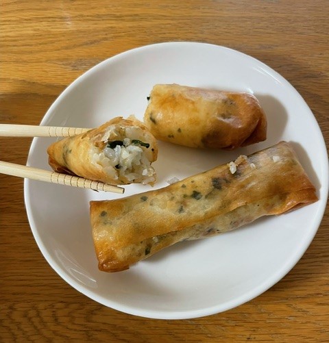 おにぎりのしょっぱさが春巻きの皮と