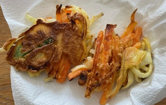 焼き蒸しかき揚げ。余った野菜の消費にも