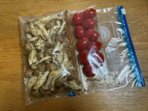 ①ジッパー付き保存袋にミニトマト、輪切りの